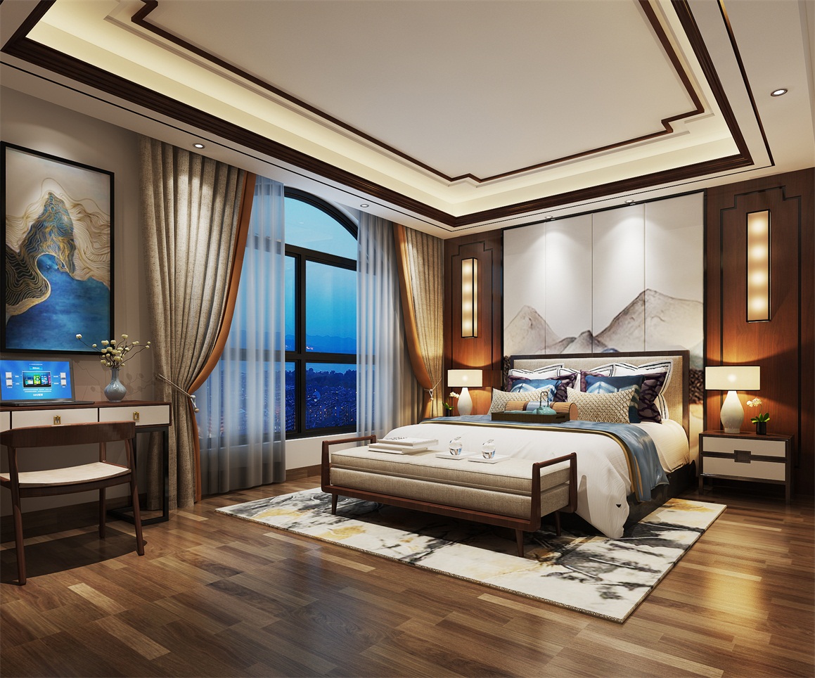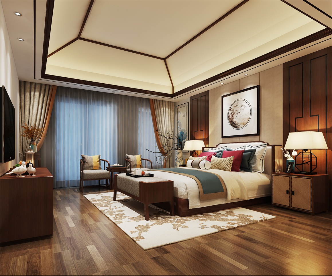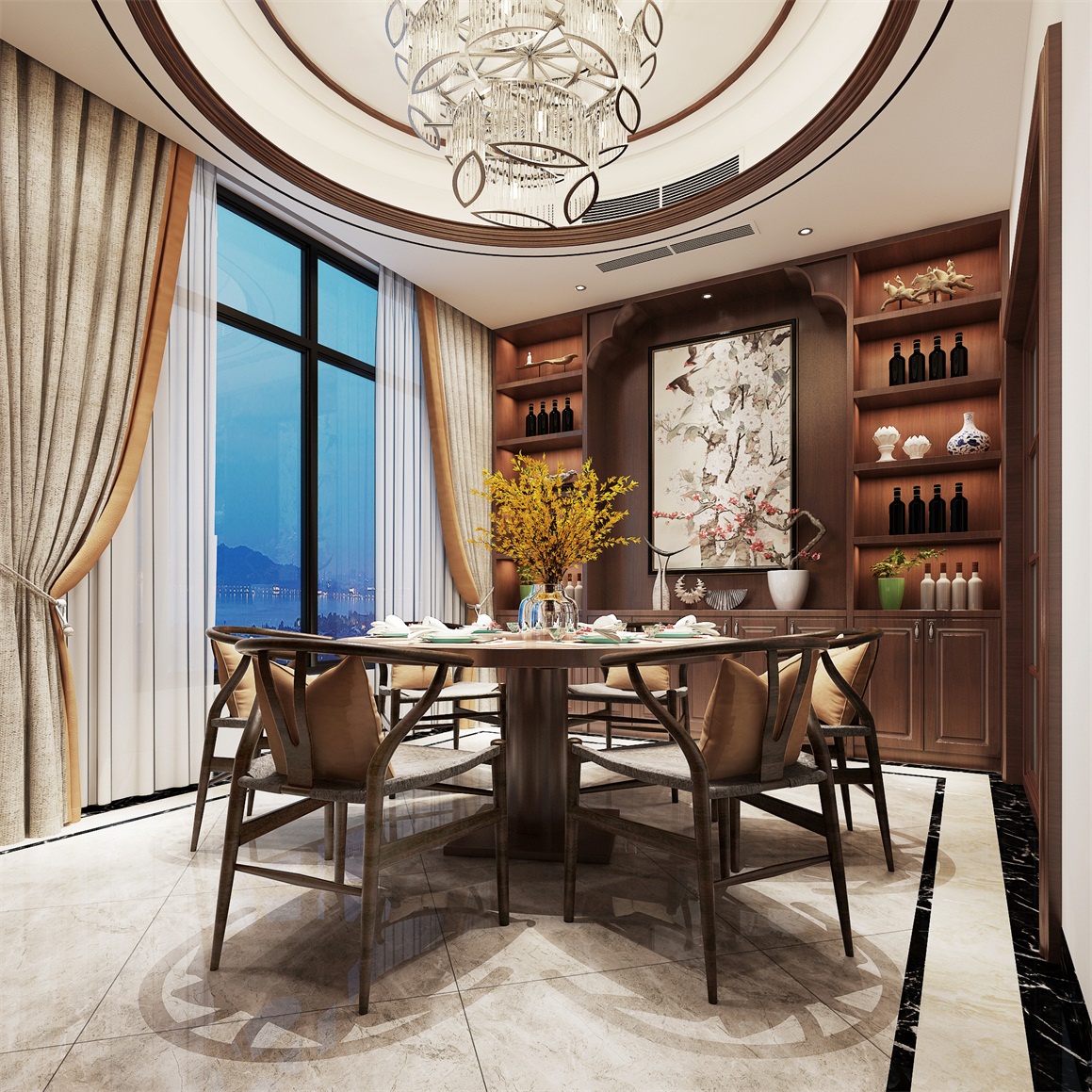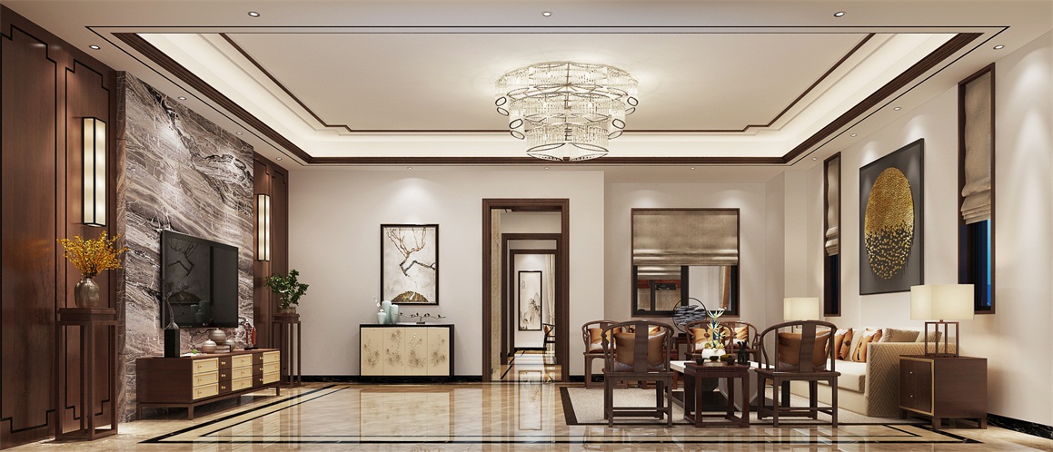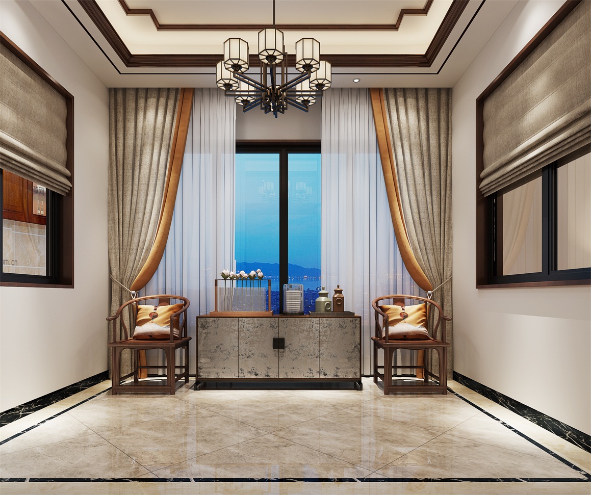 本案在設計手法上,突出了文化人溫文爾雅、平和理性的特點,用紅木色的整體色調,表達業主的溫馨典雅。在設計風格定位上,吸取了古典中的一些經典元素,又加上用以現代的修飾手法,既不過分張揚,又不古板,而又恰到好處地把雍容華貴之氣