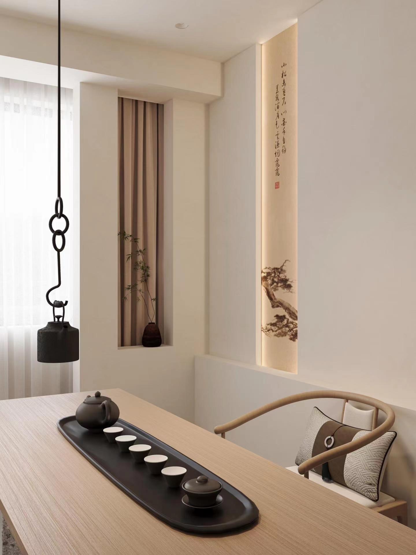 新中式禪意風設計強調質樸自然的材質選擇和簡潔明快的線條,摒棄繁瑣復雜的裝飾,追求簡約而不失品質。