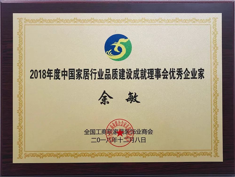 會上,全國工商聯家具裝飾業商會舉行隆重授牌儀式,廣東星藝裝飾集團當選2018年度中國家居行業品質建設成就理事會理事長單位。另外,余敏董事長榮獲2018年度中國家居行業品質建設成就理事會“優秀企業家”榮譽稱號。