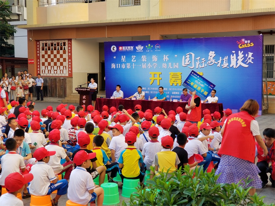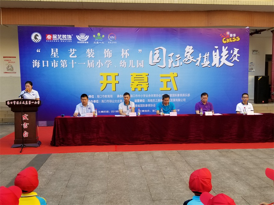 2019年“星藝裝飾杯”海口市第十一屆小學、幼兒園國際象棋聯賽開幕式于5月18日在海口市瓊山文莊第一小學隆重開賽。