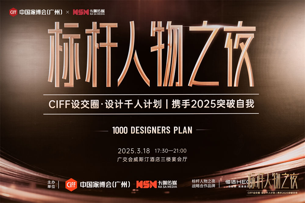 2025年 3 月 18 日,由中國家博會(huì)(廣州)與廣州卡撒傳媒聯(lián)合主辦的2025 「設(shè)計(jì)千人計(jì)劃?標(biāo)桿人物之夜」在廣州盛大開啟。這場設(shè)計(jì)界的璀璨盛宴,不僅是青年新銳設(shè)計(jì)師自我展示及榮譽(yù)表彰的賦能平臺,更是一場推動(dòng)行業(yè)革新、激發(fā)創(chuàng)新活力的思想盛宴。