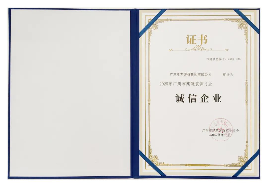 導讀:星藝裝飾榮膺“2025年廣州市建筑裝飾行業(yè)誠信企業(yè)”榮譽稱號