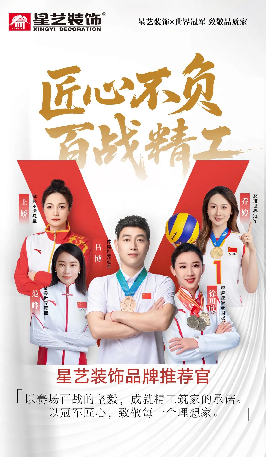 在體育賽場上,0.01秒的差距決定勝負;在裝修領域,1毫米的誤差影響終身。正是對極致標準的共同追求,讓五位體育冠軍選擇成為星藝裝飾品牌推薦官。